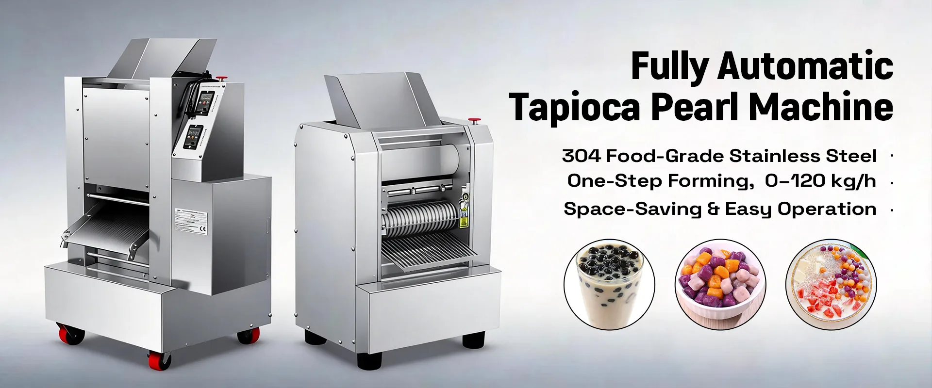 This fully automatic tapioca pearl machine is designed for milk tea shops and commercial use. With one-step forming and adjustable speed, it delivers uniform pearls efficiently while saving labor and space. Built with 304 thickened food-grade stainless steel, it ensures stable performance and reliable quality for daily production.