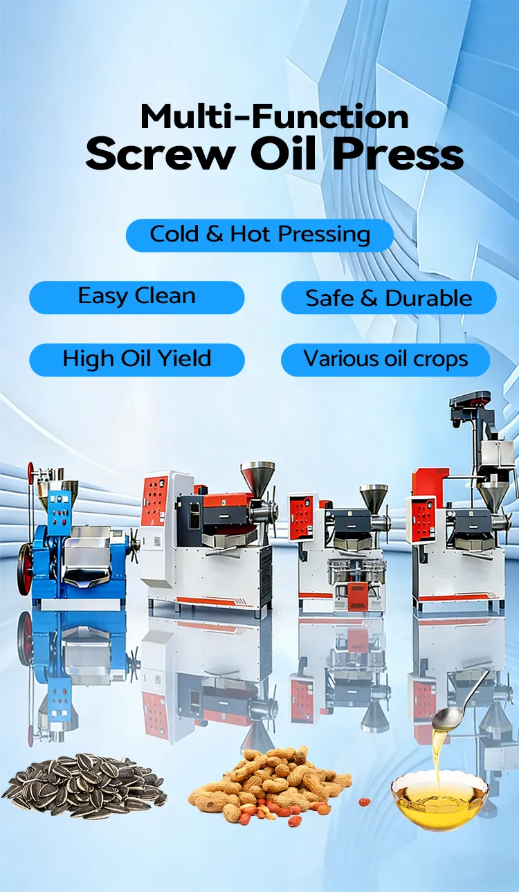 Designed for small and medium oil mills, food processing plants, and commercial oil production lines. Suitable for a wide range of oil crops, including peanut, sesame, sunflower seed, soybean, rapeseed, mustard seed, coconut and so on.