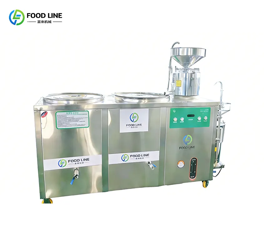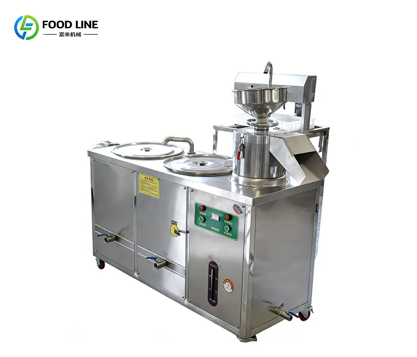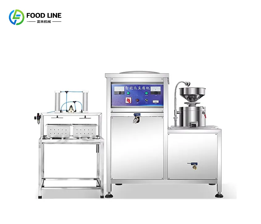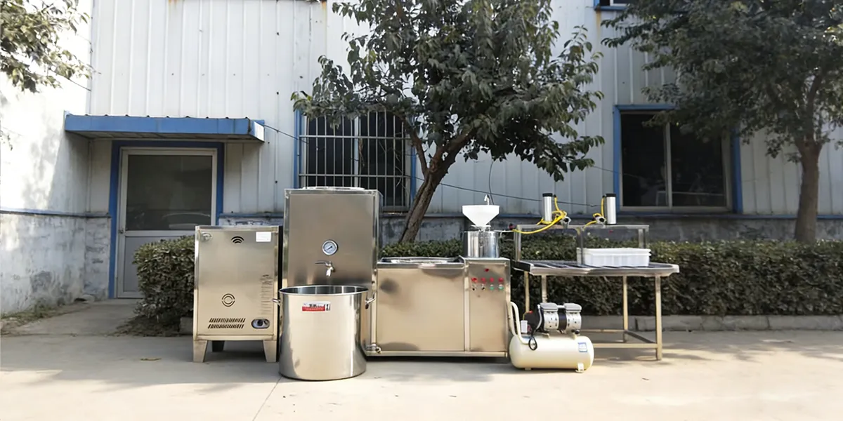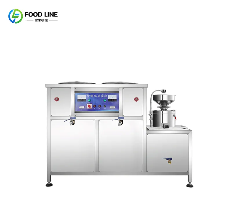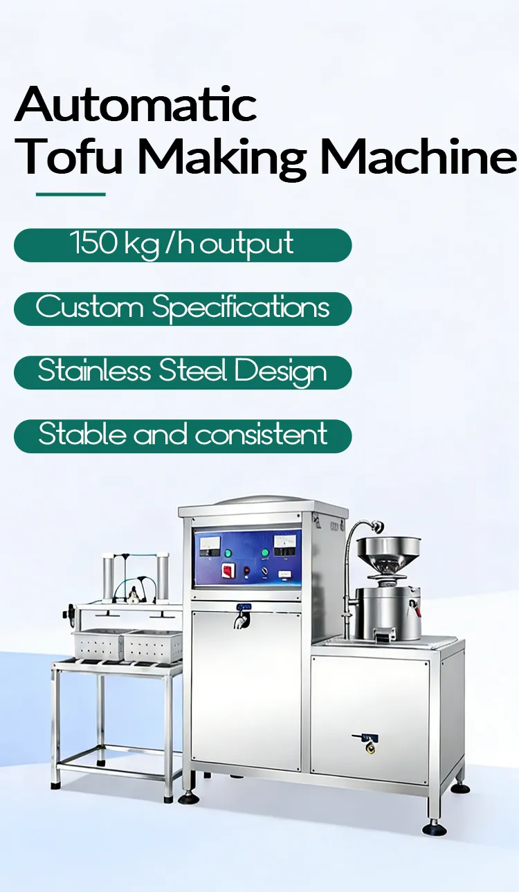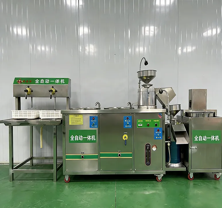 Fully automatic tofu machine with integrated grinding and cooking, no burning, stable performance, and consistent tofu quality. Built with food-grade 304/316 stainless steel